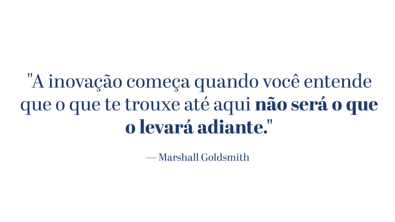 "A inovação começa quando você entende que o que te trouxe até aqui não será o que o levará adiante." — Marshall Goldsmith